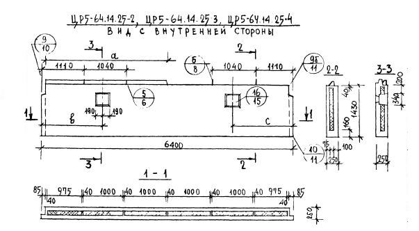 Серия 1.117-9    Панели групп ЦР1, ЦР2, ЦР4, ЦР5  толщиной 250 мм.