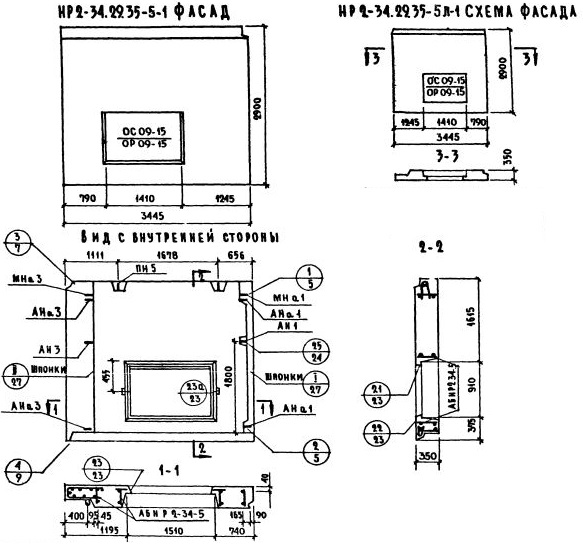НР2-35.29.4-5л-1 Наружная стеновая панель рядовая по Серии 1.132-1.