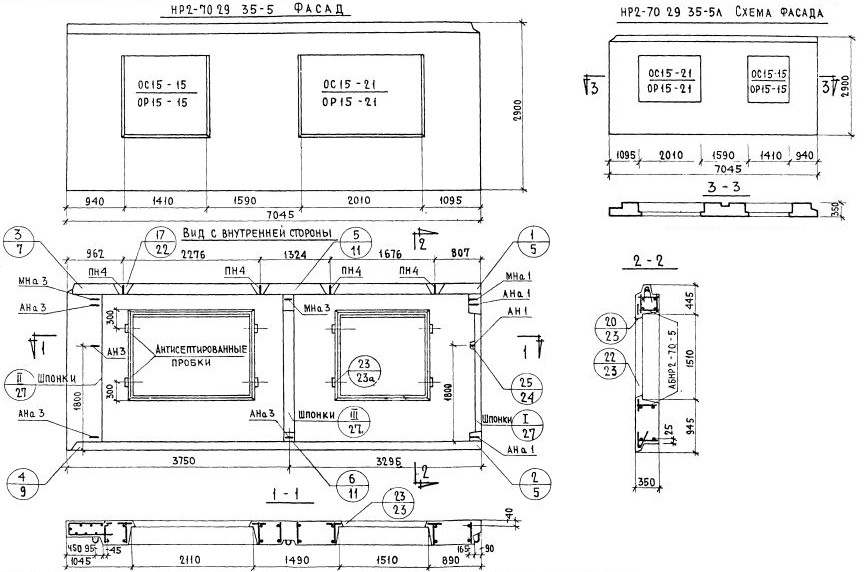 НР2-70.29.35-5 Наружная стеновая панель рядовая по Серии 1.132-1.
